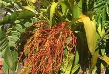 鱼尾葵,棕榈科鱼尾葵属植物。鱼尾葵幼叶近革质,老叶厚革质;羽片互生,罕见顶部的近对生,最上部的羽片大,呈樱形,侧边的羽片小,菱形似鱼尾。外缘笔直,花聚生3朵,花瓣黄色;萼片宽圆形;花药线形,黄色,…全部>>