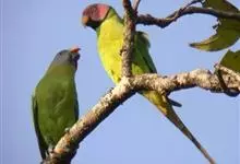 鹰头鹦鹉:鹰头鹦鹉体长35厘米,体重190-277克。额头和顶冠具柔和的白色,眼先深褐色,枕部和头部两侧有棕色羽毛,并具有柔软的白色条纹, 后颈有长长的暗红色羽毛并镶有蓝边,有2个亚种,是典型的攀禽,…全部>>