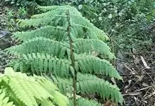 黑桫椤 Copel.)是桫椤科、桫椤属植物,植株高1-3米,有短主干,或树状主干高达数米,顶部生出几片大叶。叶柄红棕色;叶片大,长2-3米;羽片互生,斜展;小羽片约20对,互生;叶脉两边均隆起,…全部>>