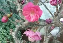 宫粉梅 Rehd.)是蔷薇科、李属植物,梅花品系中真梅系直枝梅类宫粉型,其花复瓣至重瓣,呈或深或浅的红色。落叶乔木,高达10米。树干褐紫色,有纵驳纹,小枝细而无毛,多为绿色。叶广卵形至卵形,…全部>>