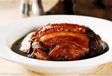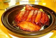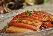 梅菜扣肉,汉族传统名菜,属客家菜。制作材料有五花肉、梅菜、葱白、姜片等。通常是将五花肉上汤锅煮透,加老抽,油炸上色,再切成肉片。之后加葱、姜等调料炒片刻,再下汤用小火焖烂,五花肉盛入碗里,上铺梅菜段,…全部>>