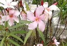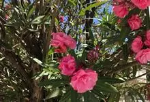 夹竹桃,又名红花夹竹桃、欧洲夹竹桃,是夹竹桃科夹竹桃属的一种常绿直立大灌木,枝条灰绿色,含水液。叶披针形,3叶轮生。聚伞花序顶生,花冠粉红至深红色,花冠漏斗状,有特殊香味。蓇葖果,圆柱形。种子长圆形,…全部>>