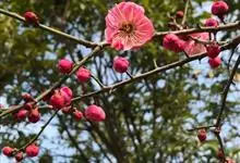 宫粉梅 Rehd.)是蔷薇科、李属植物,梅花品系中真梅系直枝梅类宫粉型,其花复瓣至重瓣,呈或深或浅的红色。落叶乔木,高达10米。树干褐紫色,有纵驳纹,小枝细而无毛,多为绿色。叶广卵形至卵形,…全部>>