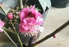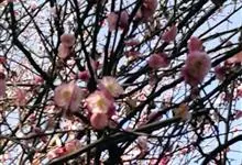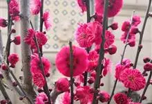 宫粉梅 Rehd.)是蔷薇科、李属植物,梅花品系中真梅系直枝梅类宫粉型,其花复瓣至重瓣,呈或深或浅的红色。落叶乔木,高达10米。树干褐紫色,有纵驳纹,小枝细而无毛,多为绿色。叶广卵形至卵形,…全部>>
