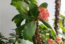 铁海棠为大戟科大戟属蔓生灌木植物;茎多分枝,具纵棱,呈旋转状;叶互生,通常集中于嫩枝上;每个花序基部边缘具微小的红色尖头;苞叶先端圆且具小尖头,无柄,上面鲜红色,下面淡红色;苞片丝状;子房光滑无毛,…全部>>