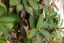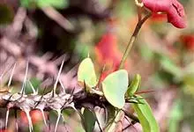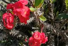 虎刺梅:别称铁海棠,是蔓生灌木植物。茎多分枝,长60-100厘米,直径5-10毫米,具纵棱,密生硬而尖的锥状刺,刺长1-1.5厘米,直径0.5-1.0 毫米,常呈3-5列排列于棱脊上,呈旋转。叶互生…全部>>