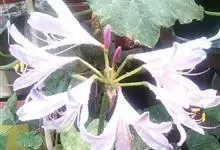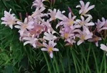稻草石蒜草本,地生。鳞茎近球形;叶带状;伞形花序,有花5-7朵,花稻草色;花被裂片腹面散生少数粉红色条纹或斑点,盛开时消失,倒披针形;雄蕊明显伸出于花被外;子房近球形。全部>>
