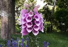 毛地黄是车前科、毛地黄属一年生或多年生草本植物。株高0.5—1米,茎直立,少分枝,全株被灰白色短柔毛和腺毛叶基生,呈莲座状,卵圆形或卵状披针形。顶生总状花序,花冠钟状,紫红色,内面有浅白斑点。菊果卵形。…全部>>