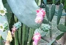胭脂掌 Mill.)仙人掌科肉质灌木或小乔木,高2-4米,圆柱状主干直径达15-20厘米。分枝多数,椭圆形、长圆形、狭椭圆形至狭倒卵形,无毛,暗绿色至淡蓝绿色;小窠散生,不突出。叶钻形,绿色,早落。…全部>>