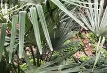 细叶棕竹,灌木,茎细如竹,多数聚生,有网状叶鞘。叶半圆形,掌状深裂,裂片狭长,阔线形,软垂,裂片7-20枚,叶柄无刺。全部>>