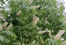 七叶树,又名梭罗树、猴板栗、娑罗树等,是无患子科七叶树属下的一种落叶乔木。七叶树树皮深褐色或灰褐色,小枝、圆柱形,无毛或嫩时有微柔毛。掌状复叶,由5-7小片组成,长圆披针形至长圆倒披针形。花序圆筒形,…全部>>