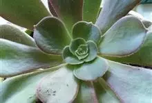 红缘莲花掌属蔷薇目、景天科植物,原产大西洋的加那利群岛。质厚,蓝绿色,被白霜,叶缘红褐色。聚伞花序,花浅黄色,有时带红晕。叶形叶色较美,有一定的观赏价值,多盆栽用于点缀室内;可放置于电视、电脑旁,…全部>>