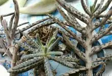棒叶落地生根是景天科、落地生根属植物。茎直立、粉褐色。叶圆棒形,上表面有沟、粉色,有红褐斑。叶片交互对生,交叉排列成十字形。叶端锯齿上长有很小的幼株、落地后即可生根成活。原产非洲马达加斯加。…全部>>
