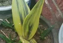 金边虎尾兰是天门冬科虎尾兰属植物。有横走根状茎;叶基生,直立,长条状披针形,有白绿色和深绿色相间的横带斑纹且具宽的金黄色边缘;向下部渐狭成长短不等的、有槽的柄;花亭基部有淡褐色的膜质鞘;花淡绿色,…全部>>