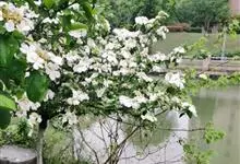 琼花是荚蒾科荚蒾属落叶或半常绿灌木植物,又名扬州琼花、蝴蝶木、八仙花、聚八仙、蝴蝶戏珠花、毛琼花。琼花高达4米;树皮灰褐色或灰白色。叶纸质,卵形至椭圆形或卵状矩圆形。聚伞花序,花冠白色,辐状。…全部>>
