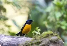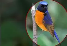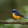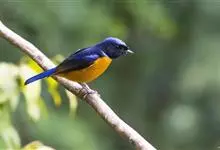 棕腹蓝仙鹟,Niltava vivida,鹟科仙鹟属的一种小型鸣禽,善在空中飞捕昆虫,中等体型18厘米,上体蓝,下体棕色,具黑色眼罩,胸橘黄渐变成臀部的皮黄色。国内分布于四川、云南、西藏和台湾等地。…全部>>