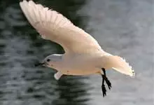 三趾鸥,中型水鸟,体长38~47厘米。夏羽头、颈和翕前部白色。背、翅上覆羽和腰灰色。肩灰色,羽缘和尖端白色。尾上覆羽和尾白色。冬羽和夏羽基本相似,但头顶和枕淡灰色,头顶有不明显的灰色纵纹。…全部>>