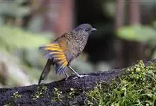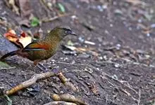 蓝翅噪鹛:噪鹛科、彩翼噪鹛属动物。中型鸟类,体长22-25厘米。上体棕橄榄褐色密被黑色鳞状斑,眼蓝白色,眼上有一长而宽阔的黑色眉纹,从眼先直到颈侧。下体棕褐色被黑色鳞状斑;尾上和尾上覆羽栗色,…全部>>