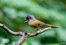 栗额斑翅鹛是噪眉科、斑翅鹛属中型鸟类,体长20-23厘米。头顶具浓密的羽冠,前额栗棕色,头顶灰褐色。上体棕褐色,两翅棕褐色具黑色横斑,翅基外缘有一黑斑,尾呈凸状,棕褐色具黑色横斑。下体棕褐色,…全部>>