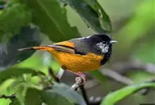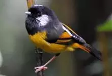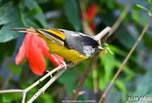 金胸雀鹛是莺科、雀鹛属小型鸟类,体长10-11厘米。头黑色,头顶中央有一道白色中央冠纹,颊和耳羽亦为白色,在黑色的头部极为醒目。上体深灰沾绿。两翅黑色,外侧飞羽有黄色外缘和白色端斑;尾凸状、黑色。…全部>>
