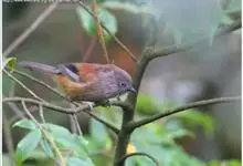 棕头雀鹛为鸦雀科,褐鹛属小型鸟类,体长10-13厘米。头顶栗褐色具黑色侧冠纹。上体茶黄色,飞羽外侧表面灰白色,内侧表面红棕色,内外二色之间夹有黑色。颏、喉白色具不明显的暗色纵纹,胸沾葡萄灰色,…全部>>