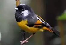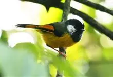 金胸雀鹛是莺科、雀鹛属小型鸟类,体长10-11厘米。头黑色,头顶中央有一道白色中央冠纹,颊和耳羽亦为白色,在黑色的头部极为醒目。上体深灰沾绿。两翅黑色,外侧飞羽有黄色外缘和白色端斑;尾凸状、黑色。…全部>>