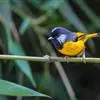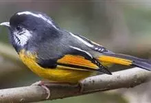 金胸雀鹛是莺科、雀鹛属小型鸟类,体长10-11厘米。头黑色,头顶中央有一道白色中央冠纹,颊和耳羽亦为白色,在黑色的头部极为醒目。上体深灰沾绿。两翅黑色,外侧飞羽有黄色外缘和白色端斑;尾凸状、黑色。…全部>>