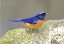 棕腹大仙鹟:体重24-28克,体长15-17厘米,是一种小型的色彩亮丽的鹟。雄鸟上体深蓝,下体棕色,脸黑,额、颈侧小块斑、翼角及腰部亮丽闪辉蓝色。与棕腹仙鹟易混淆,区别在色彩较暗。雌鸟灰褐,…全部>>