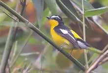 白眉姬鹟是小型鸟类,体长11-14厘米。雄鸟上体大部黑色,眉纹白色,在黑色的头上极为醒目。腰鲜黄色,两翅和尾黑色,翅上具白斑。下体鲜黄色。雌鸟上体大部橄榄绿色。腰鲜黄色,翅上亦具白斑。下体淡黄绿色。…全部>>