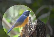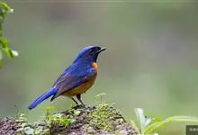棕腹蓝仙鹟,Niltava vivida,鹟科仙鹟属的一种小型鸣禽,善在空中飞捕昆虫,中等体型18厘米,上体蓝,下体棕色,具黑色眼罩,胸橘黄渐变成臀部的皮黄色。国内分布于四川、云南、西藏和台湾等地。…全部>>