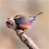 花彩雀莺:体长9-12厘米,是一种毛茸茸偏紫色的雀莺。顶冠棕色,眉纹白。尾长,羽毛松软。前额有一宽阔的眉纹淡黄色,头顶栗色或棕红色,有的具紫蓝色光泽。背灰色,腰和尾上覆羽辉紫蓝色,飞羽灰褐色。…全部>>