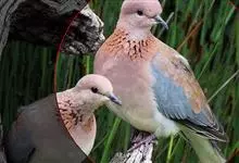 棕斑鸠,是鸽形目鸠鸽科斑鸠属鸟类。整个头和颈淡粉红色,头顶和前额较暗,颊、喉较淡,前颈基部两侧羽毛黑色具宽阔的棕色端斑,使前颈两侧形成黑色斑点状的黑斑。…全部>>