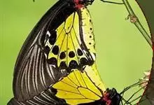 荧光裳凤蝶是凤蝶科裳凤蝶属的一种大型蝴蝶,该物种共有3个亚种。该蝶飞翔的时候姿态优美,前翅黑色,后翅金黄色和黑色交融的斑纹在阳光照射下金光灿灿,显得华贵美丽。幼虫寄主为多种马兜铃属的植物,取食马兜铃…全部>>