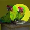 黄领牡丹鹦鹉:是一种小型的鹦鹉。体长14-15厘米,体重43-47克。颜色鲜艳,体形胖乎乎如桃脸牡丹鹦鹉,头较大,显得体态短小。野生的黄领牡丹鹦鹉头部为黑色,犹如戴上黑头罩。它的颈部和胸部为黄色,背…全部>>