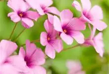 红花酢浆草别名铜锤草、大酸味草、幸运草等,是酢浆草科酢浆草属的多年生直立草本植物。其无地上茎,地下部有球状鳞茎;叶基生,叶柄长5~30cm或更长,被毛;花瓣5,倒心形,淡紫色至紫红色,基部颜色较深。…全部>>