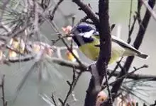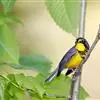黄腹山雀是雀形目山雀科山雀属鸟类。虹膜褐色或暗褐色;嘴蓝黑色或灰蓝黑色;头、喉胸斑黑色,颊斑、颈后斑白色;上体蓝灰色,腰银白色;翼具两排白色点斑;下胸、腹鲜黄色;尾黑色,…全部>>
