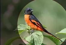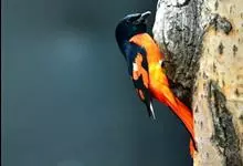 灰喉山椒鸟:共有8个亚种。体长18-22厘米。雄鸟头部和背亮黑色,腰、尾上覆羽和下体朱红色,翅黑色具一大一小的两道朱红色翼斑。中央尾羽黑色,外侧尾羽基部黑色,端部红色。…全部>>