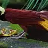 大极乐鸟是极乐鸟属中最大的鸟种。成年雄鸟体长可达到43厘米,雌性可达35厘米。雄鸟的额、颊、喉等墨绿色;头、颈黄色;上体暗赤栗色;腹部葡萄红色,胁部有长饰羽,其基部橙黄,中部黄色,…全部>>
