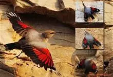 红翅旋壁雀:体重15-23克,体长120-178毫米。是一种体型略小的鸟类。尾短而嘴长,翼具醒目的绯红色斑纹。飞羽黑色,外侧尾羽羽端白色显著,初级飞羽两排白色点斑飞行时成带状。繁殖期雄鸟脸及喉黑色,…全部>>