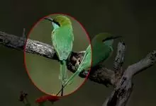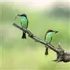 绿喉蜂虎是佛法僧目、蜂虎科的小型鸟类,共有9个亚种。身长22-25厘米,翼展29-30厘米,体重15-20克。喉绿色,额部、头顶至上背为锈红色,其余上体均为亮绿色。中央尾羽延长且端段狭细,…全部>>