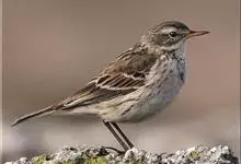 水鹨是雀形目鹡鸰科的鸟类,属小型鸣禽,体长约17厘米,翼展23至28厘米,寿命9年。是体羽偏灰色而具纵纹的鹨。上体橄榄绿色具褐色纵纹,尤以头部较明显。眉纹乳白色或棕黄色,耳后有一白斑。下体灰白色,…全部>>