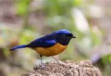 棕腹蓝仙鹟,Niltava vivida,鹟科仙鹟属的一种小型鸣禽,善在空中飞捕昆虫,中等体型18厘米,上体蓝,下体棕色,具黑色眼罩,胸橘黄渐变成臀部的皮黄色。国内分布于四川、云南、西藏和台湾等地。…全部>>