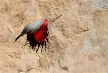 红翅旋壁雀:体重15-23克,体长120-178毫米。是一种体型略小的鸟类。尾短而嘴长,翼具醒目的绯红色斑纹。飞羽黑色,外侧尾羽羽端白色显著,初级飞羽两排白色点斑飞行时成带状。繁殖期雄鸟脸及喉黑色,…全部>>