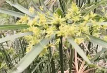 风车草,莎草科莎草属多年生草本植物。其株高60~150厘米,茎近圆柱形,直立无分枝;根状茎短、粗大,须根坚硬;叶顶生为伞状;有多数辐射枝;小穗多数,密生于辐射分枝的顶端;有果为椭圆形;花褐色,…全部>>