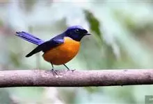 棕腹蓝仙鹟,Niltava vivida,鹟科仙鹟属的一种小型鸣禽,善在空中飞捕昆虫,中等体型18厘米,上体蓝,下体棕色,具黑色眼罩,胸橘黄渐变成臀部的皮黄色。国内分布于四川、云南、西藏和台湾等地。…全部>>