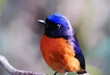 棕腹大仙鹟:体重24-28克,体长15-17厘米,是一种小型的色彩亮丽的鹟。雄鸟上体深蓝,下体棕色,脸黑,额、颈侧小块斑、翼角及腰部亮丽闪辉蓝色。与棕腹仙鹟易混淆,区别在色彩较暗。雌鸟灰褐,…全部>>