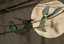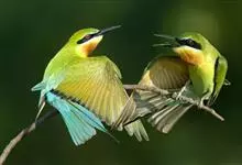 蓝颊蜂虎:是蜂虎科、蜂虎属的鸟类,共有2个亚种。体长27-33厘米,翼展46-49厘米,体重38-50克。嘴形细长而下弯,先端尖,…全部>>
