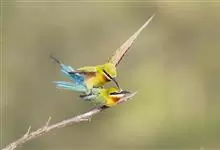 栗喉蜂虎是蜂虎科蜂虎属的鸟类。有热带鸟类羽毛艳丽的特征:喉部是栗红色的,黑色的过眼纹,翅膀和背部是绿色的,尾翼是蓝色的,飞行时翅膀下面的羽毛是橙黄色的,在阳光的照射下,它们全身闪烁着金属般的艳丽光泽,…全部>>