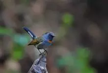 棕胸蓝姬鹟:属小型鸣禽,体长10-13厘米,体重6-10克,是一种体型很小的灰蓝及棕色鹟,雌雄羽色不同,雄鸟羽色艳丽,雌鸟羽色暗淡。雄鸟上体深蓝色,胸橙黄色,下腹灰白色。亚成鸟具褐色斑驳。…全部>>