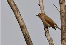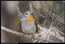 红喉姬鹟小型鸟类,体长11~13厘米。雄鸟上体灰黄褐色,眼先、眼周白色,尾上覆羽和中央尾羽黑褐色,外侧尾羽褐色,基部白色。颏、喉繁殖期间橙红色,胸淡灰色,其余下体白色,非繁殖期颏、喉变为白色。…全部>>